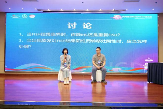 讨论阶段,内江市第二人民医院刘秀兰教授、华西医院病理科张孟尼教授围绕“如何处理FISH临界值结果”展开探讨,提出实践解决方案:当检测结果处于临界值时,可通过“增加蜡块取样数量”“增配技术人员双盲复核”“重复免疫组化(IHC)检测”等方式,减少人为主观因素对结果的影响。