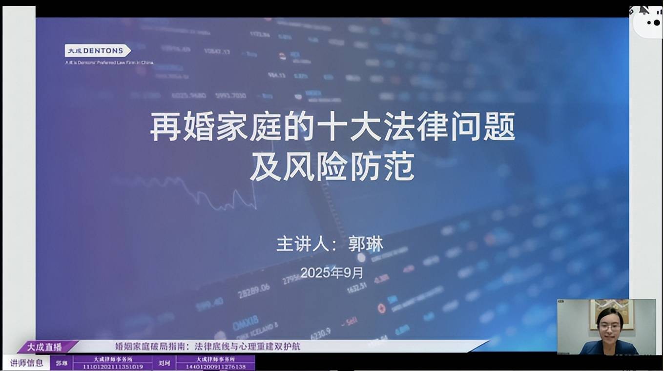 2025年9月12日,大成金融专业委员会婚姻继承与金融创新法律研究中心“大成婚家”系列论坛第三期“婚姻家庭破局指南:法律底线与心理重建双护航”成功举办。本次论坛分别由大成律师事务所合伙人、大成金融专业委员会婚姻继承与金融创新法律研究中心副主任郭琳,大成广州分所合伙人(待备案)、大成金融专业委员会婚姻继承与金融创新法律研究中心副秘书长刘珂,以及婚姻家庭及青少年心理咨询领域资深的心理咨询师白雪,围绕再婚法律风险防范、抚养权争夺的误区及化解、家庭心理问题的产生原因及疏导等婚姻家庭领域的高频需求展开深度解读与实务分享。