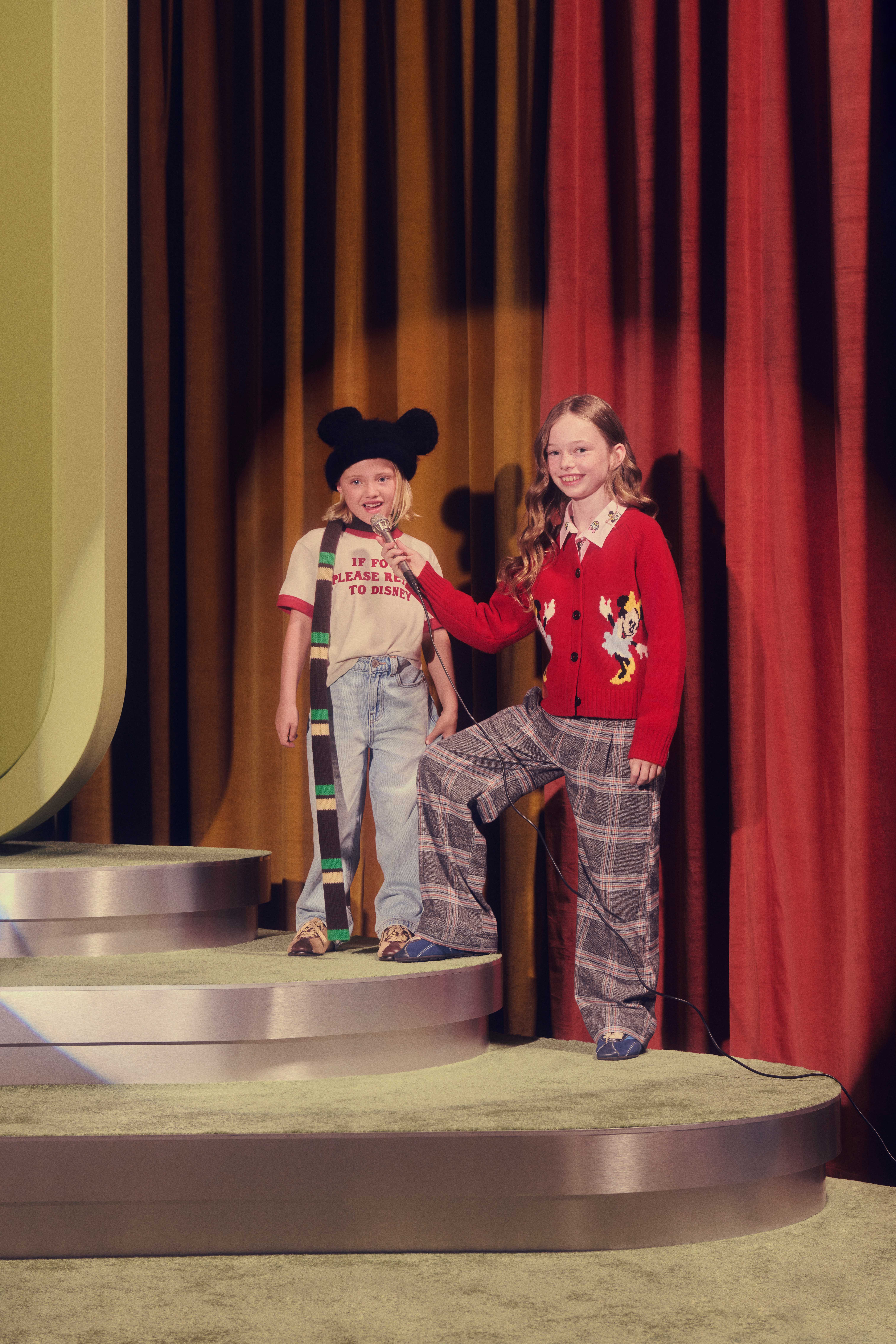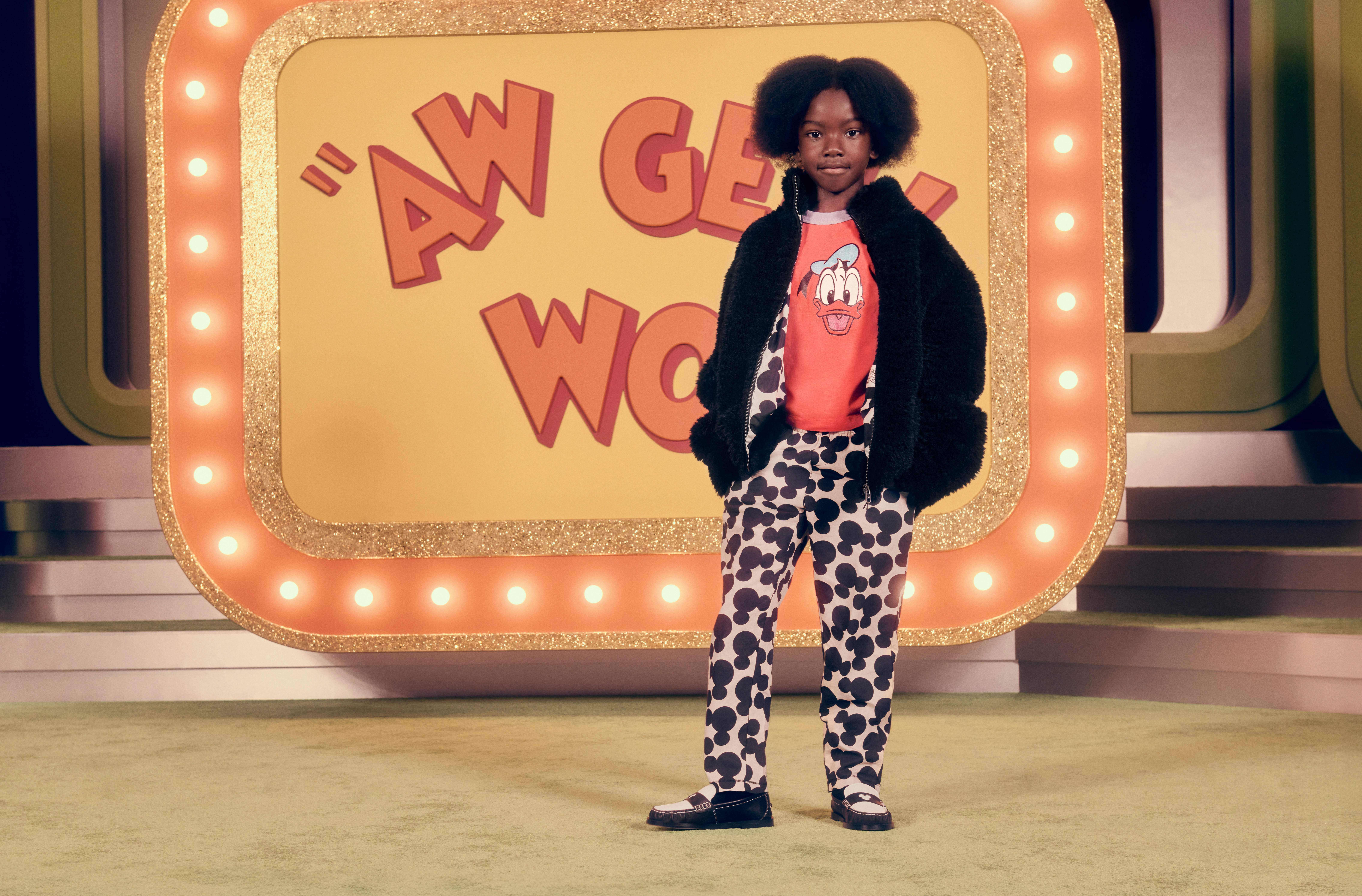 在摄影棚的聚光灯下,该系列在“米奇与朋友们”的陪伴下焕发生机。单品的活泼欢快呼应参与者的个性,新伙伴、欢呼的观众、游戏的欢乐氛围及熟悉的场景进一步烘托了愉快的氛围。