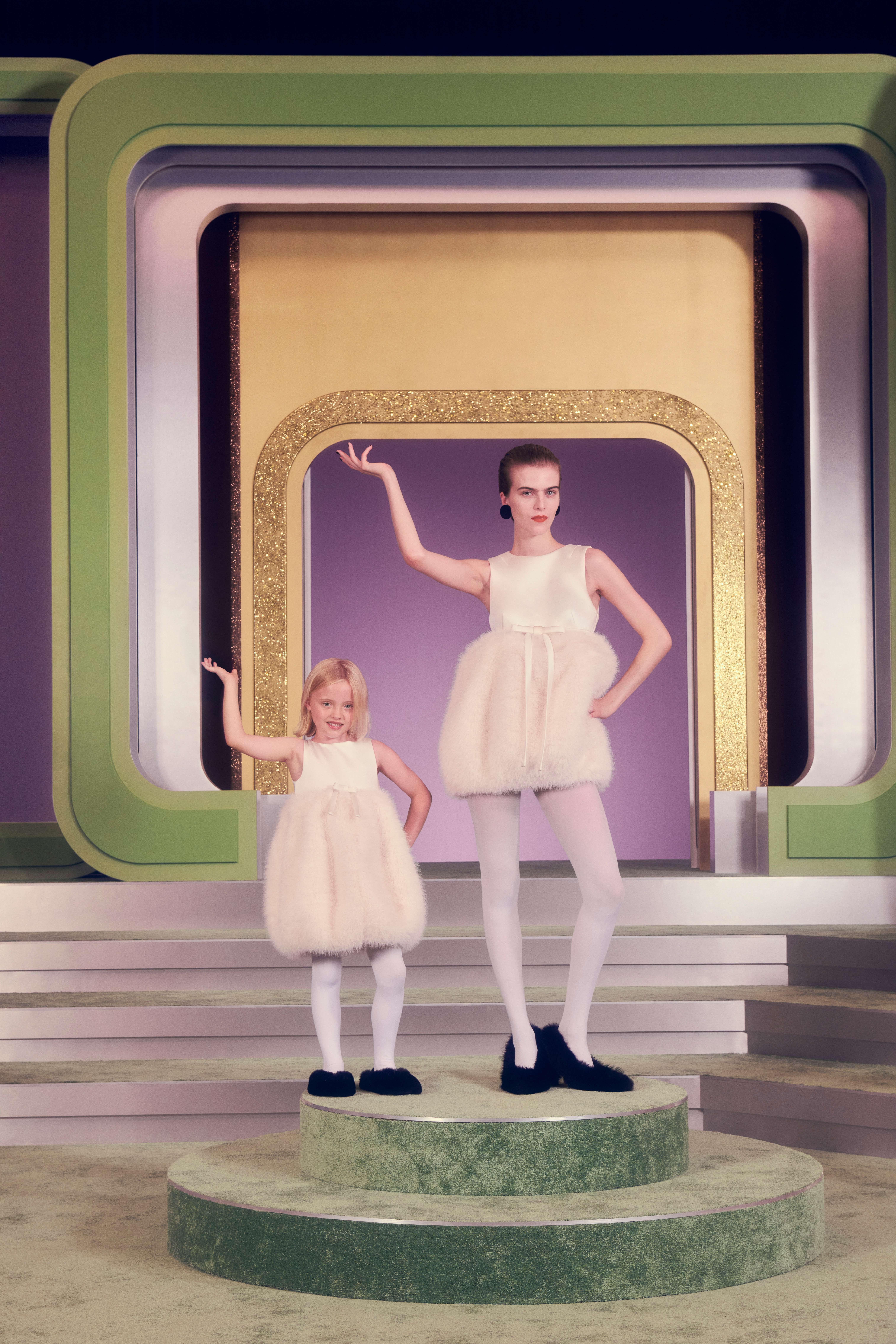 Lambert还首次设计了童装。男女装系列的印花、图案与廓形经缩小改良,为孩子们打造时髦衣橱。